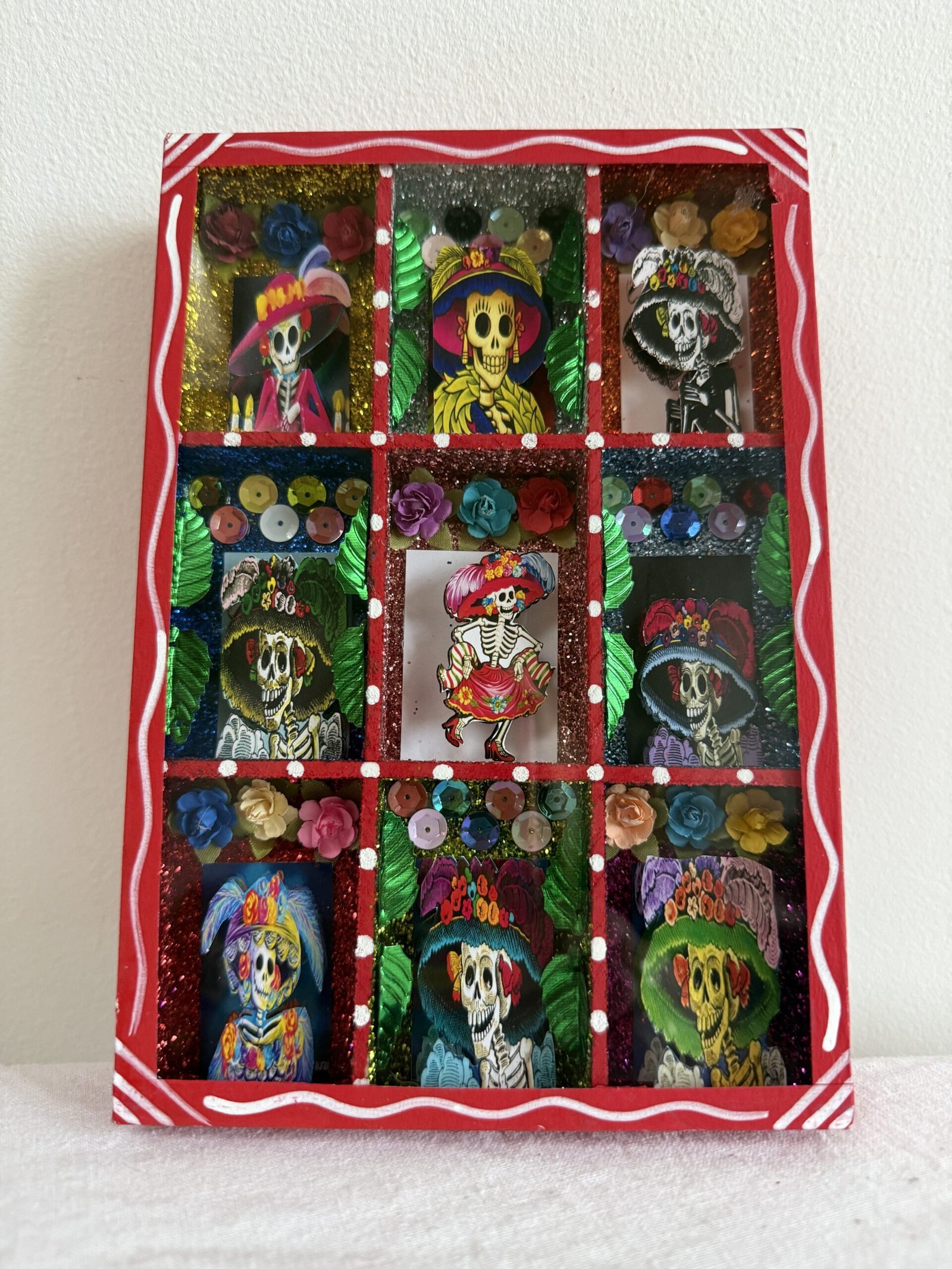 Caterina handmade Mexican craft shadow box featuring 9 of Caterina a Day of the Dead character
