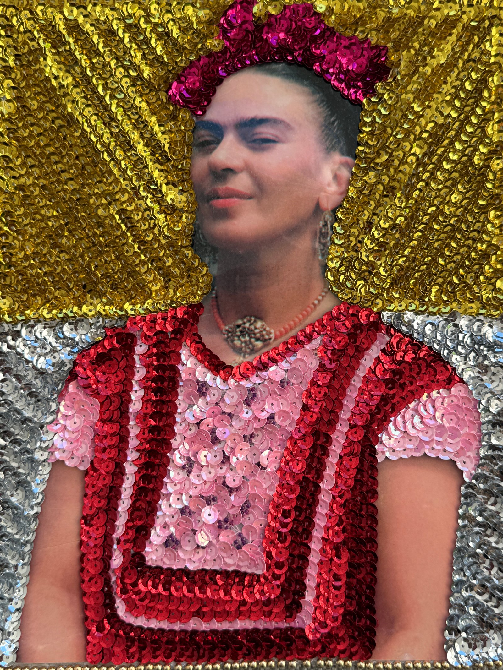 Frida Kahlo sequined art, framed