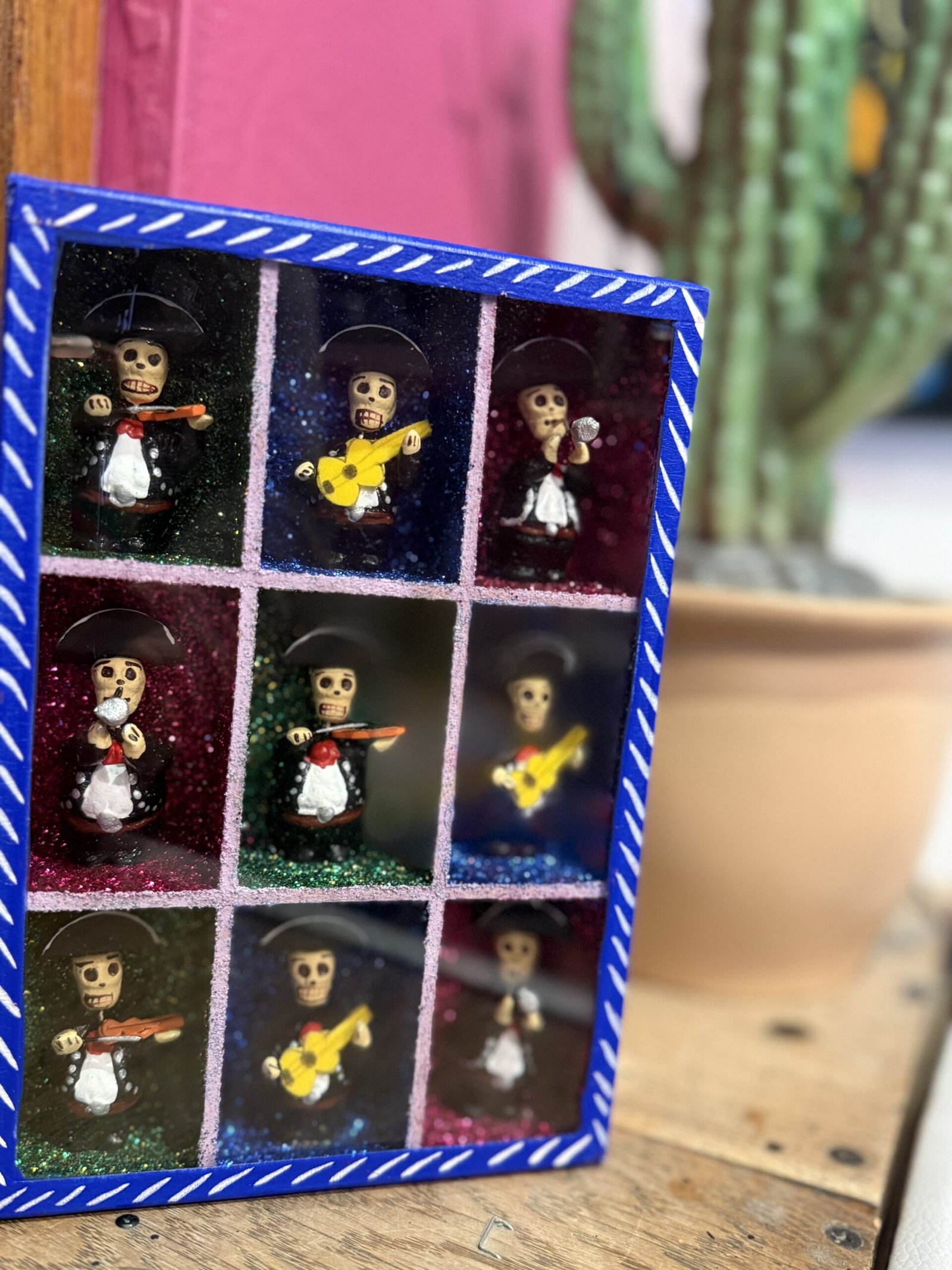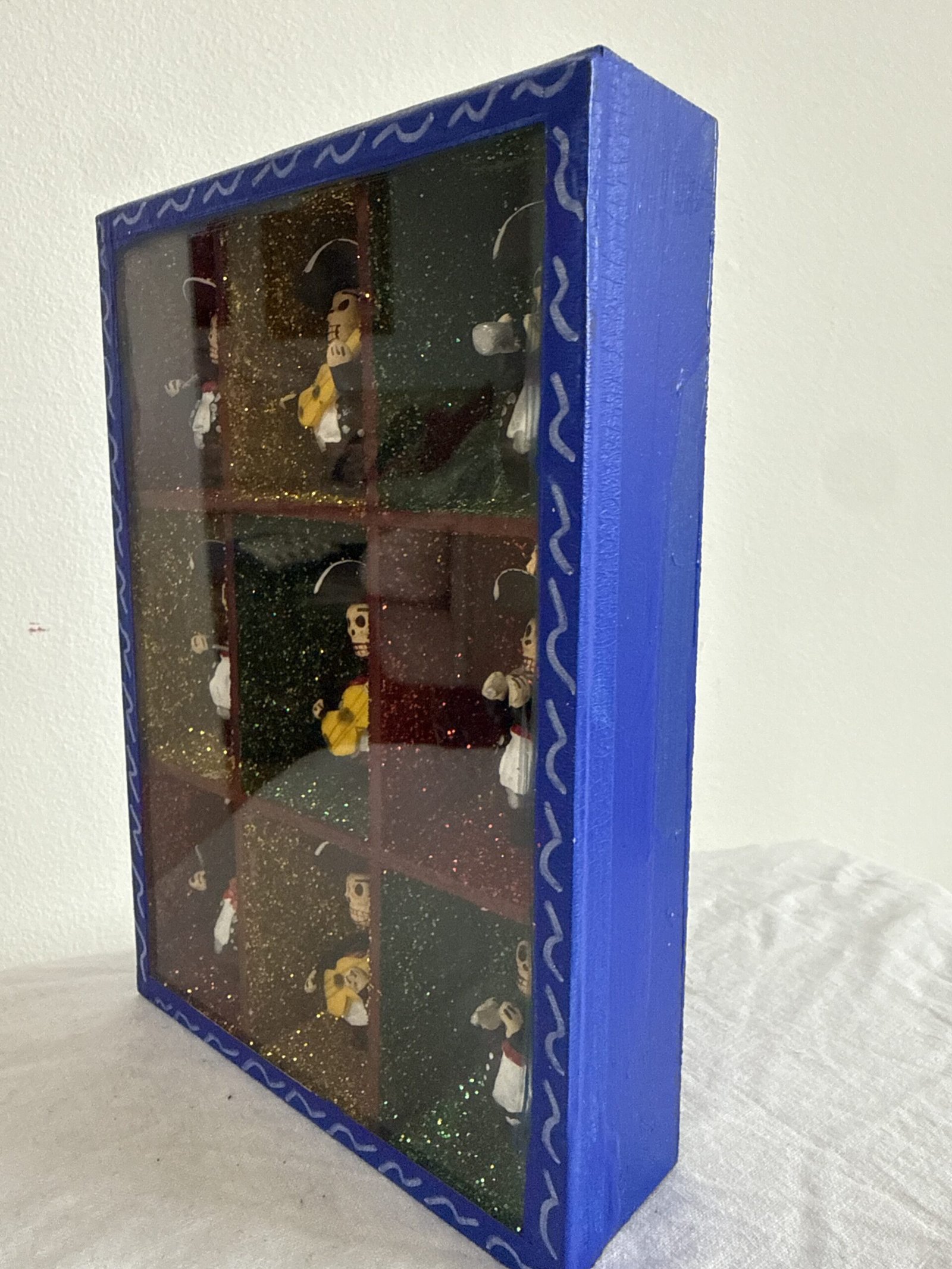 Mariachi shadow box with Dia de Los muertos musicians.